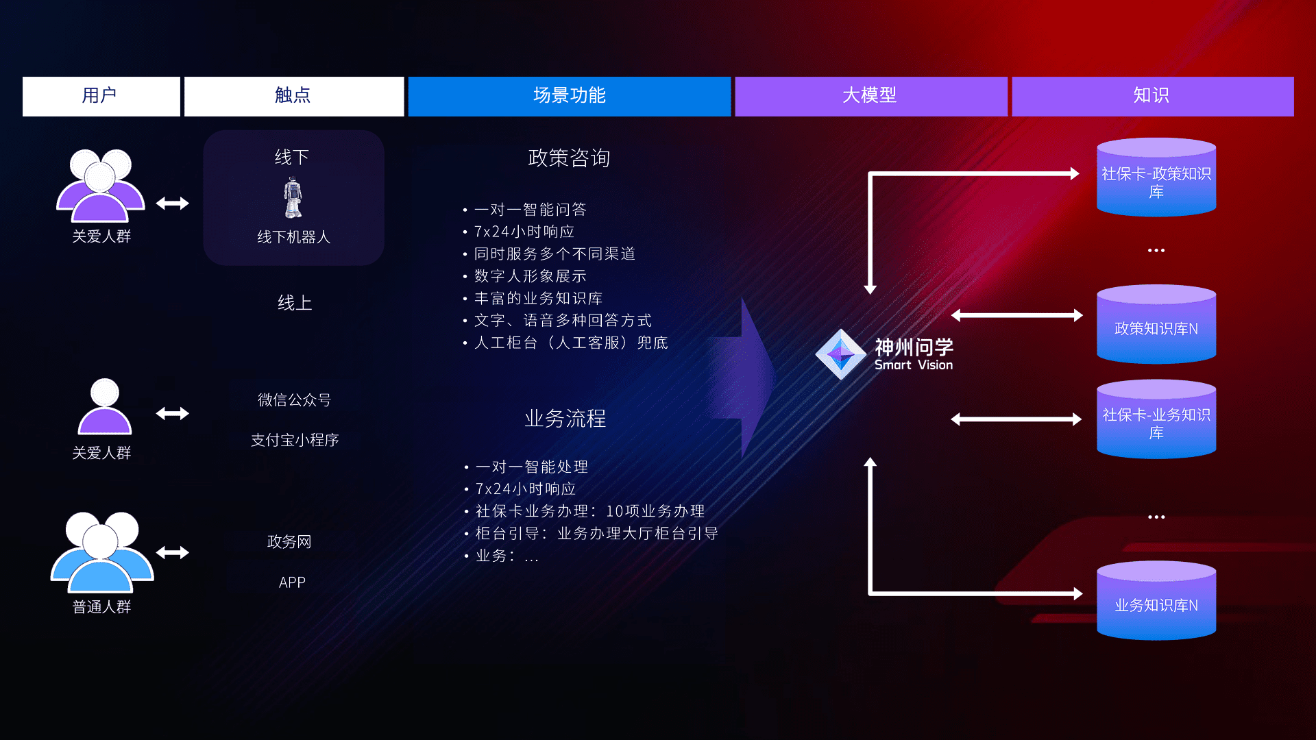 • 内嵌业务流程,,,通过语音互动对话即可完成业务咨询办理。。
